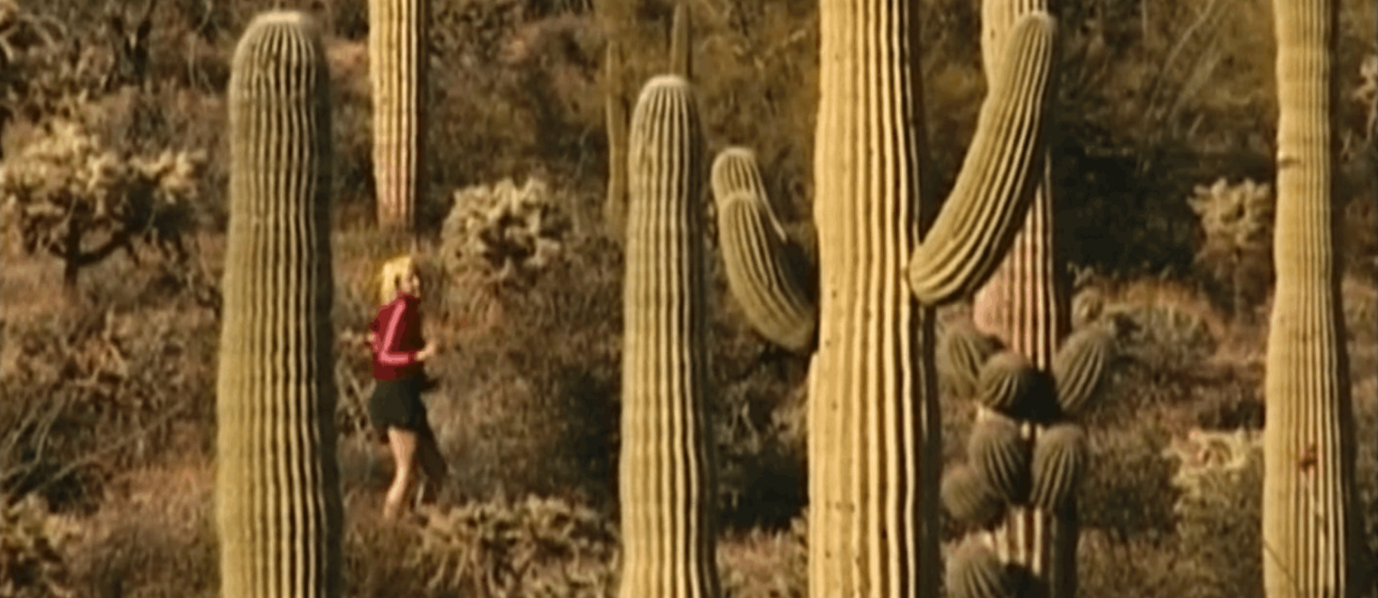 Пара в клоунских масках делает семейный снимок с младенцем. Истошно-розовый мотоцикл в пустынном пейзаже. Парень боксирует с заснеженным деревом. Обнаженный мужчина танцует в обнимку с монстерой под Дэвида Боуи. Эти эстетские кадры, снятые в ностальгической цветовой гамме, напоминают сновидческие фильмы Мишеля Гондри.